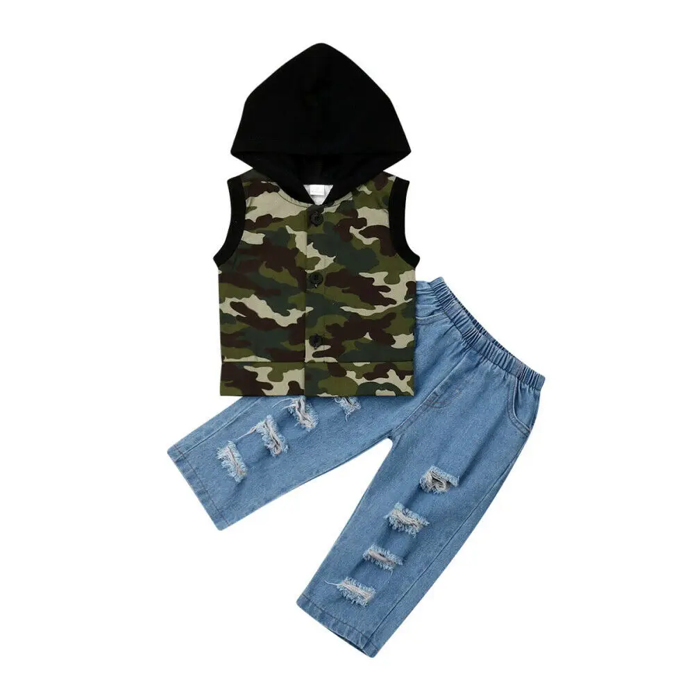 Buy 0-5T Toddler Kid Baby Boy Sleeveless Camouflage Hooded Top Vest Ripped Hole Jeans Long Pants Summer Right Here and Right Now Just for USD US $6.56, Price will be rise up at any time without notification and I cant guaranted that the stock is still available tommorow or next hour. So Please Save It Now!
