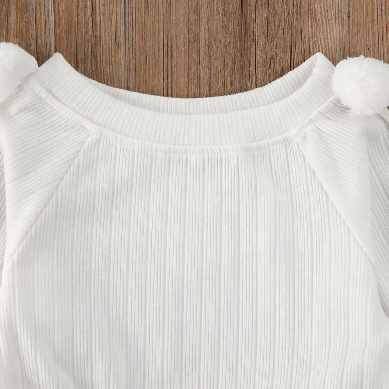 Limited Price for 1-5Y Toddler Baby Girl Knitted Sweater Solid White Long Sleeve Tee Tops Ripped Hole Jeans Pockets L