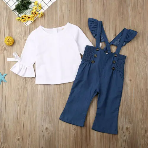 Best Chance for Girls Blue Strap Jeans Infant Kid Baby Girl Flare Sleeve Top RufflesTrousers Pants Outfits Clothes