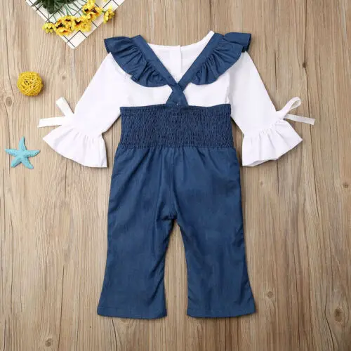 Buy Girls Blue Strap Jeans Infant Kid Baby Girl Flare Sleeve Top RufflesTrousers Pants Outfits Clothes Right Here and Right Now Just for USD US $5.35, Price will be rise up at any time without notification and I cant guaranted that the stock is still available tommorow or next hour. So Please Save It Now!