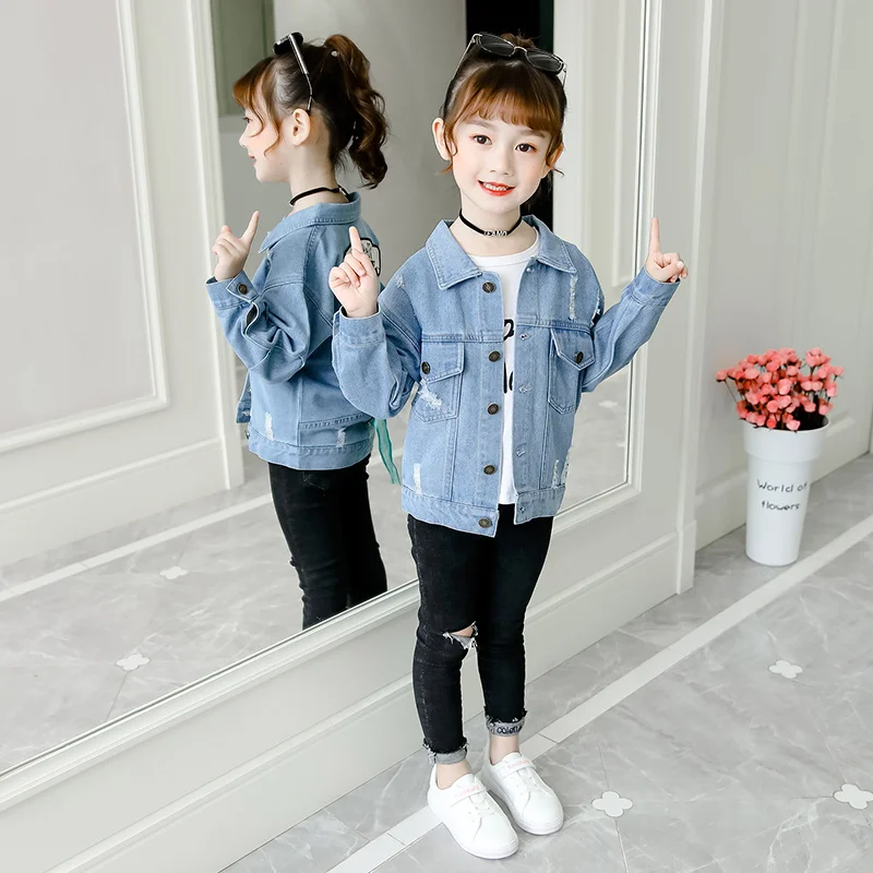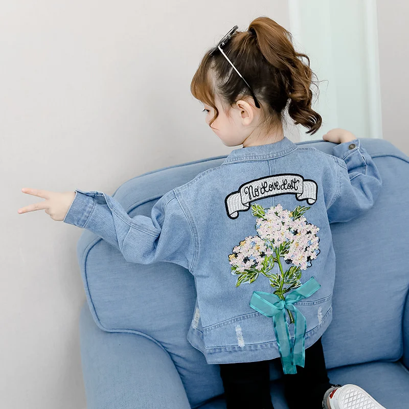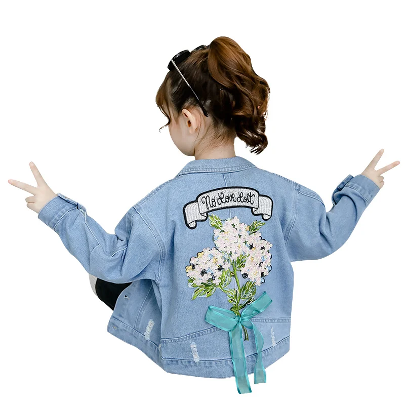 Good Chance for Kids Jackets for Girls Spring Autumn Baby Denim Jacket Flower Embroidery Outerwear Coats for Teenag