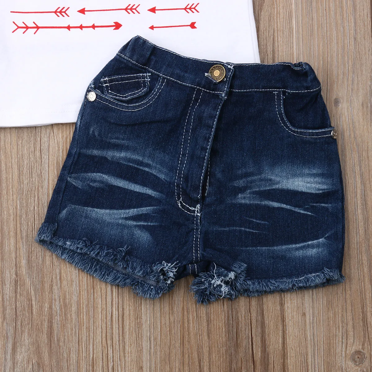 Cheap Offer of Pudcoco 2PCS Toddler Baby Kids Girl Cotton Sleeveless Vest T-shirt + Shorts Jeans Pants Summer Outf